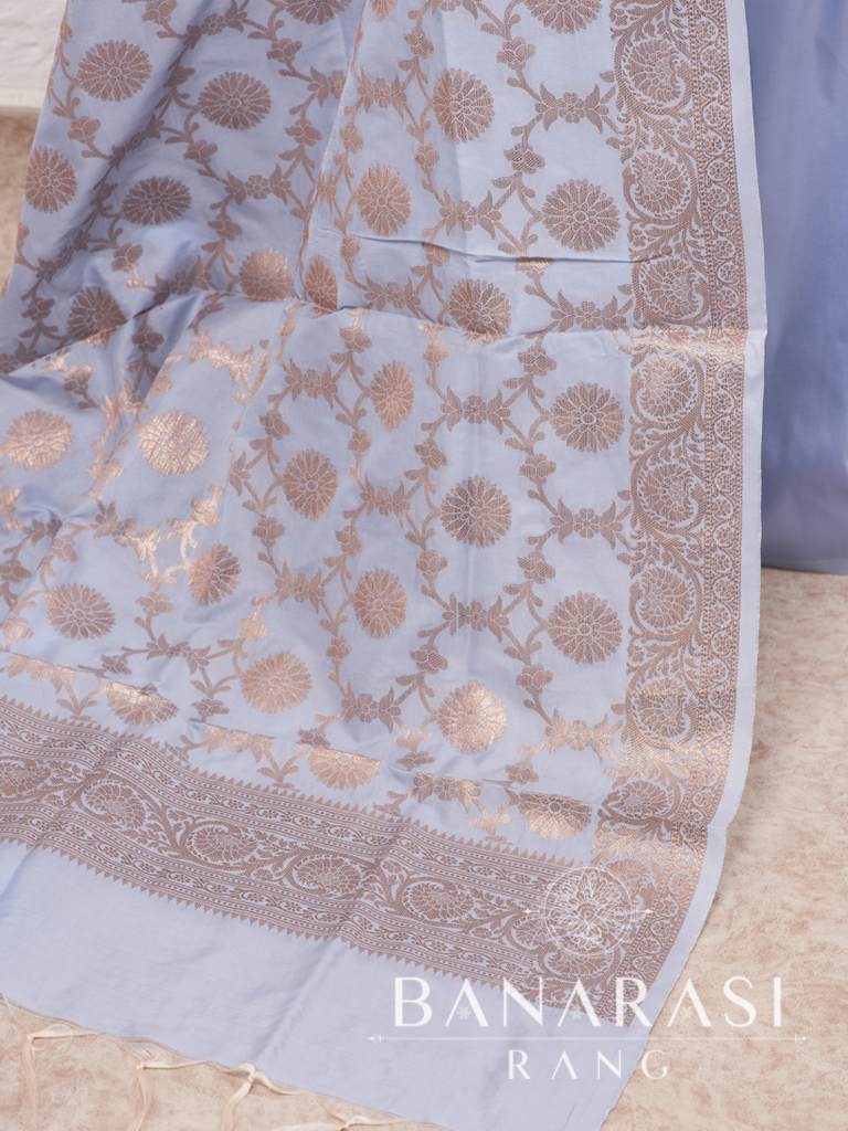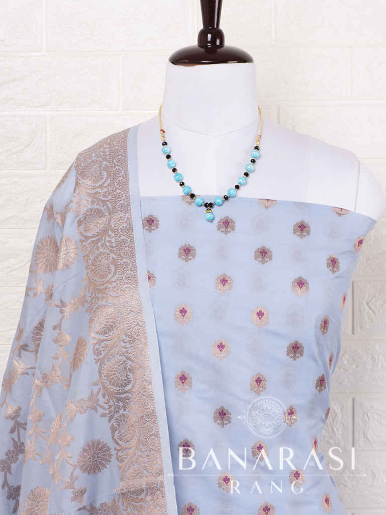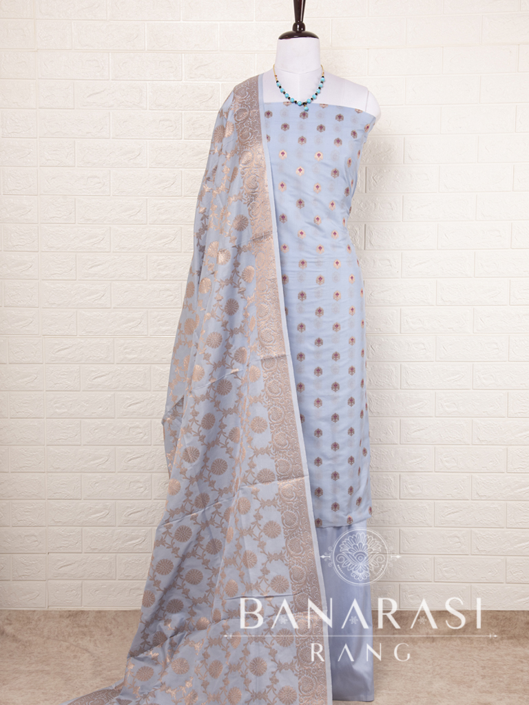 Look dashing in this feminine traditional handwoven exclusive dress material . Includes unstitched fabric of top and bottom,with dupatta. Product - Art Silk