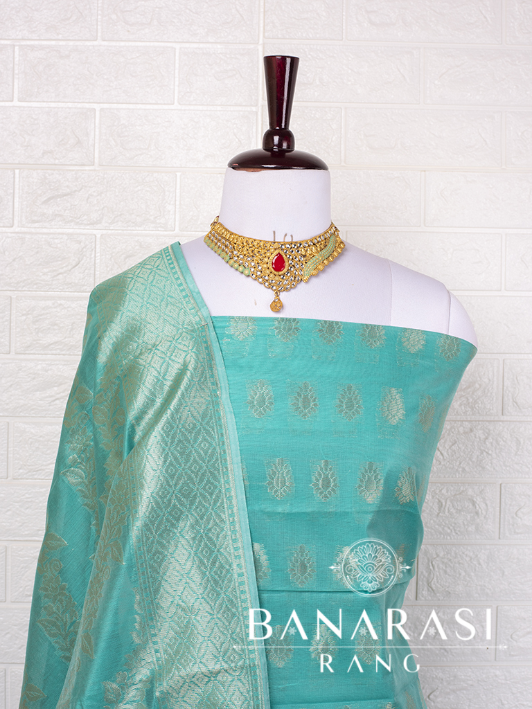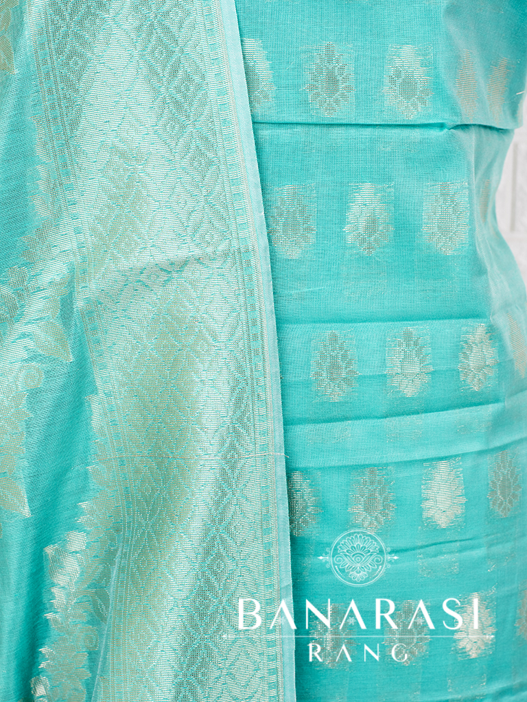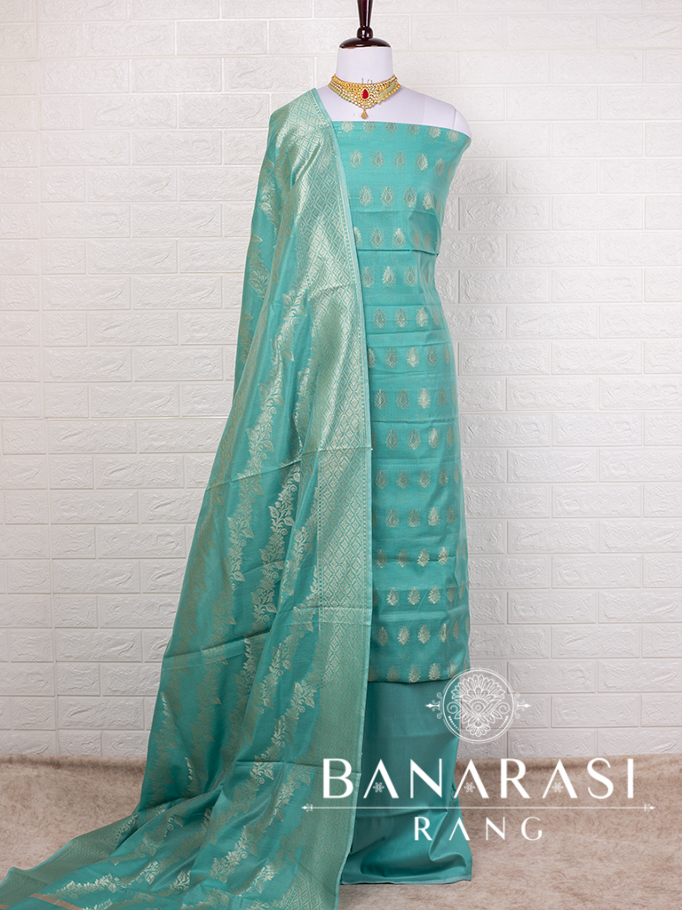 Look dashing in this feminine traditional handwoven exclusive dress material . Includes unstitched fabric of top and bottom,with dupatta. Product - Art Silk
