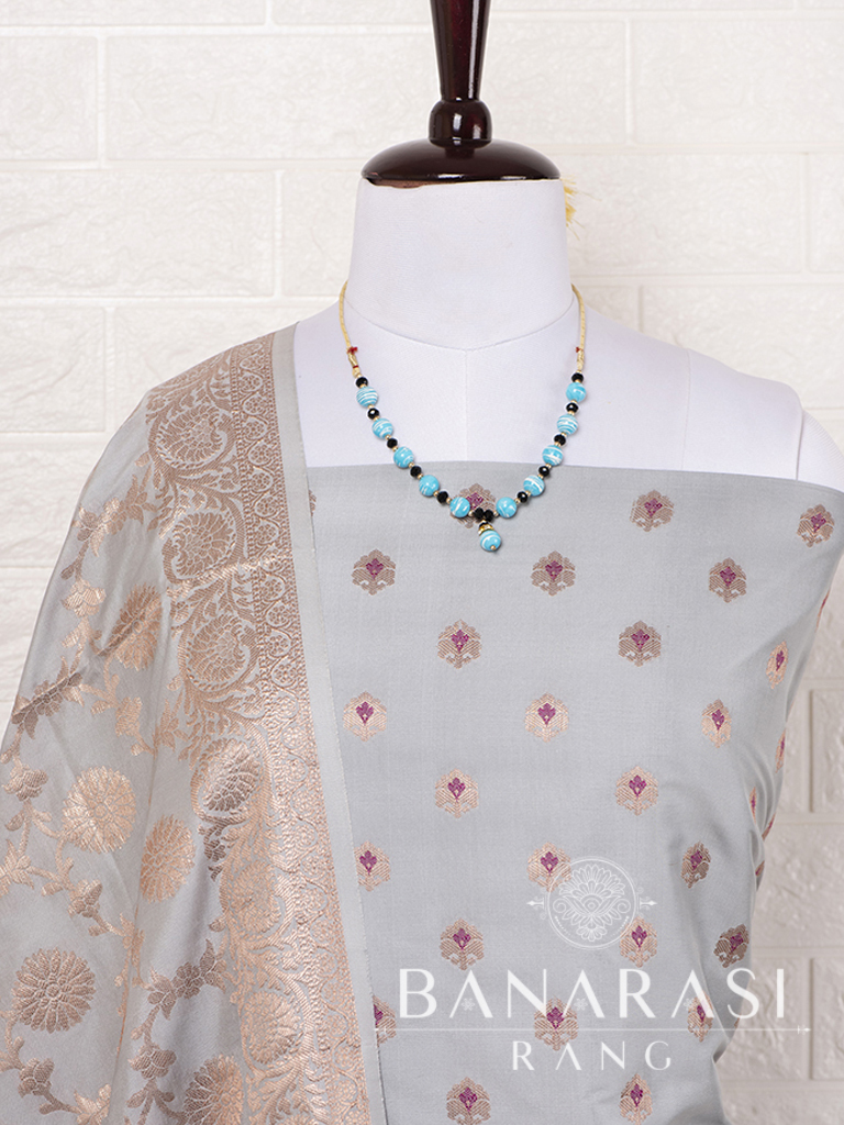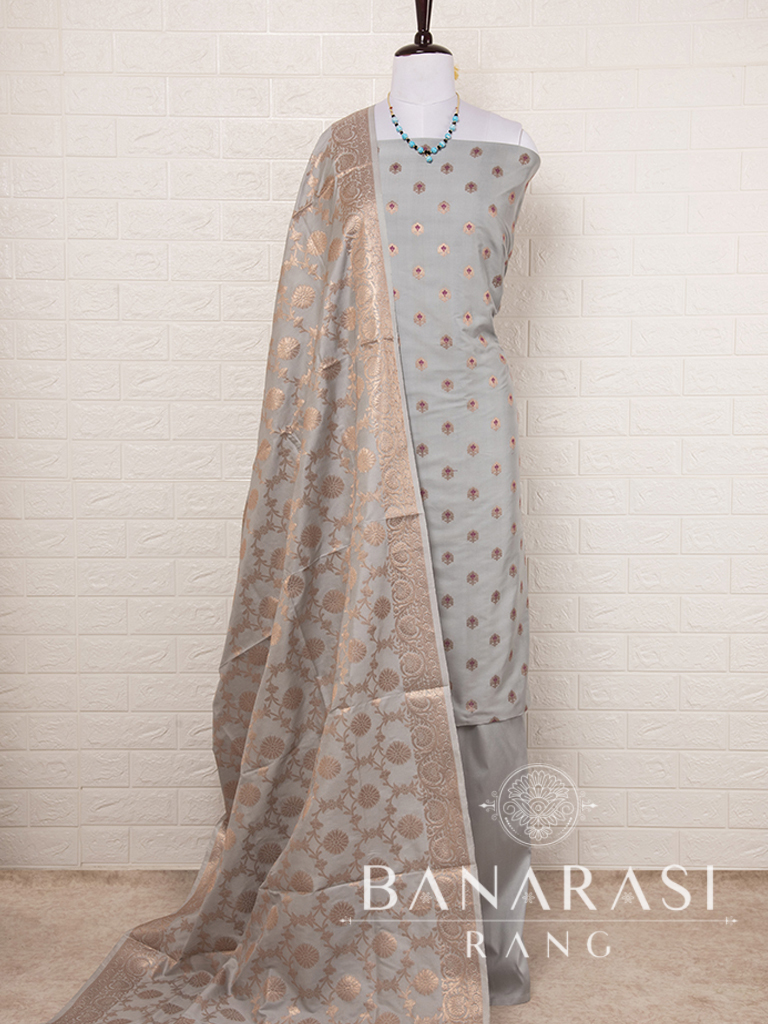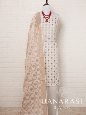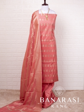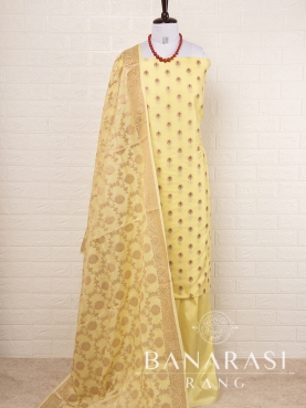 Look dashing in this feminine traditional handwoven exclusive dress material . Includes unstitched fabric of top and bottom,with dupatta. Product - Art Silk