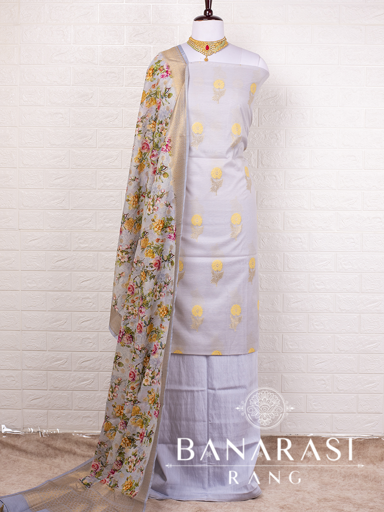 Look dashing in this feminine traditional handwoven exclusive dress material. Includes unstitched fabric of top and bottom,with dupatta.