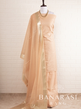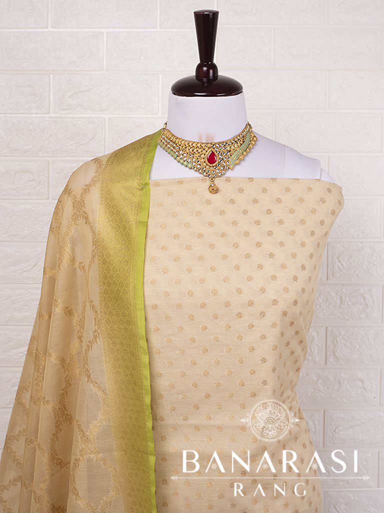 Look dashing in this feminine traditional handwoven exclusive dress material. Includes unstitched fabric of top and bottom,with dupatta.