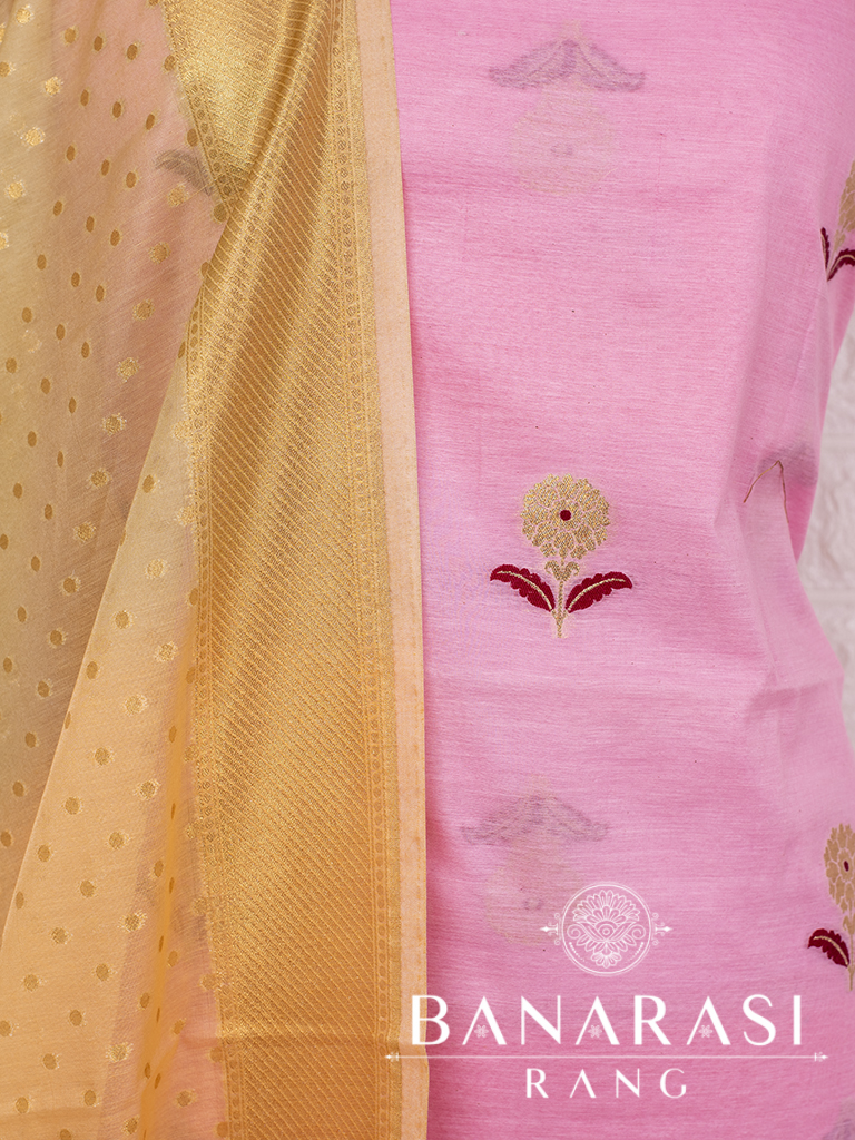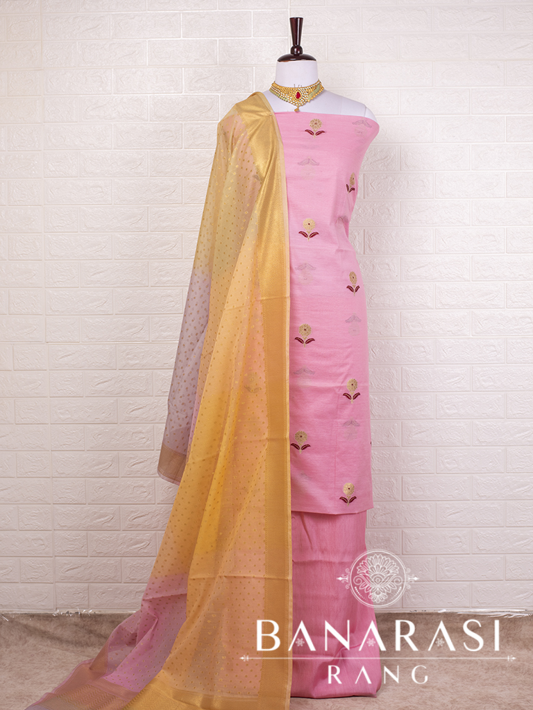 Look dashing in this feminine traditional handwoven exclusive dress material. Includes unstitched fabric of top and bottom,with dupatta.