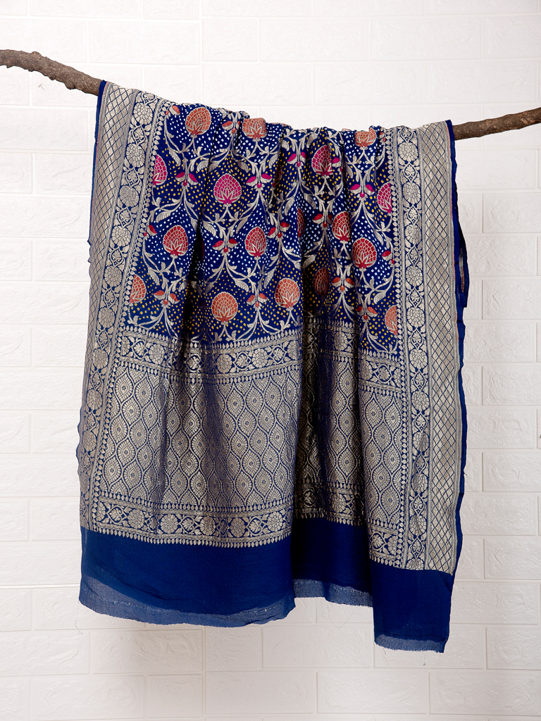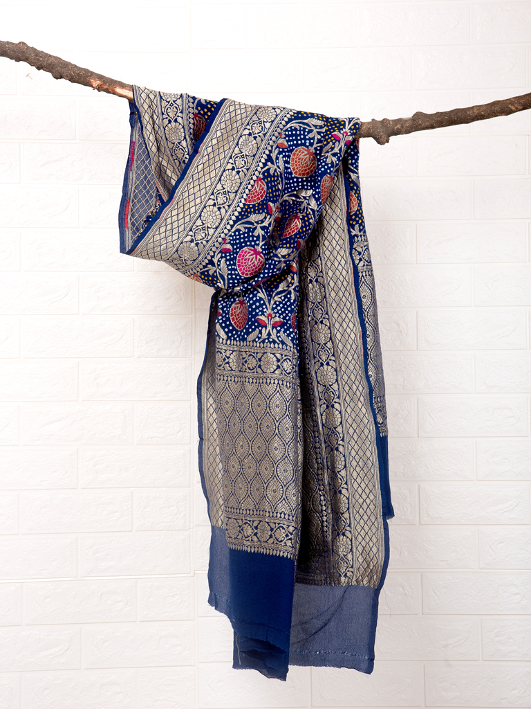 A Gorgeous piece to complete your evening look this season. This bandhej dupatta is beautifully designed with mina work pattern for a graceful and ethnic look.