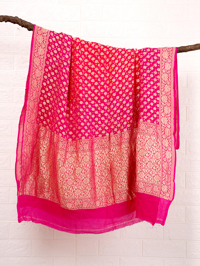 A Gorgeous piece to complete your evening look this season. This bandhej dupatta is beautifully designed with mina work pattern for a graceful and ethnic look.