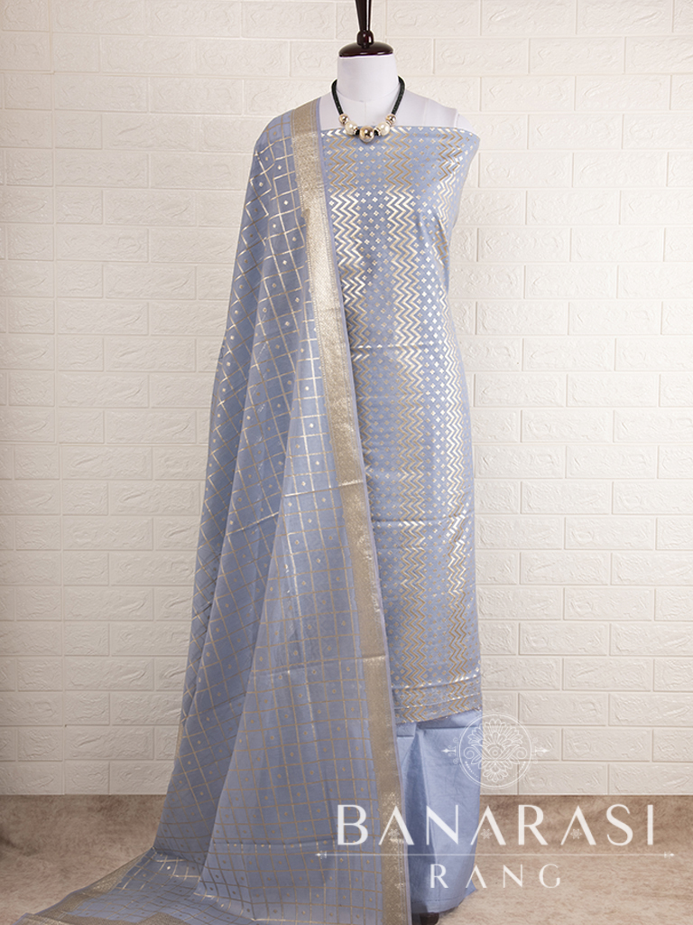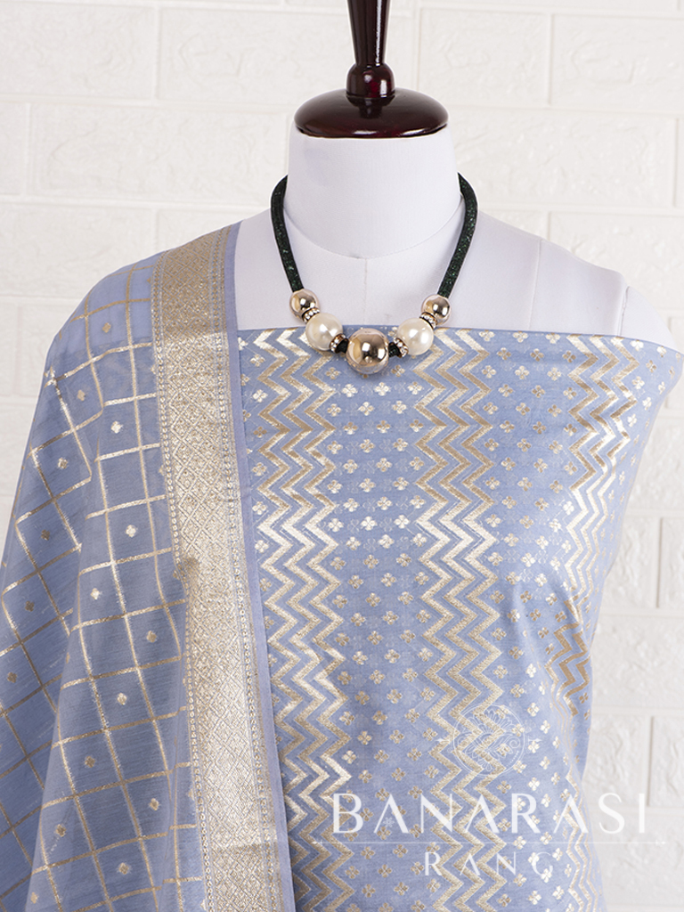 Look dashing in this feminine traditional handwoven exclusive dress material . Includes unstitched fabric of top and bottom,with dupatta. Product - Handwoven Pure chanderi suit Fabric - Chanderi Cotton colour-hydrangea blue