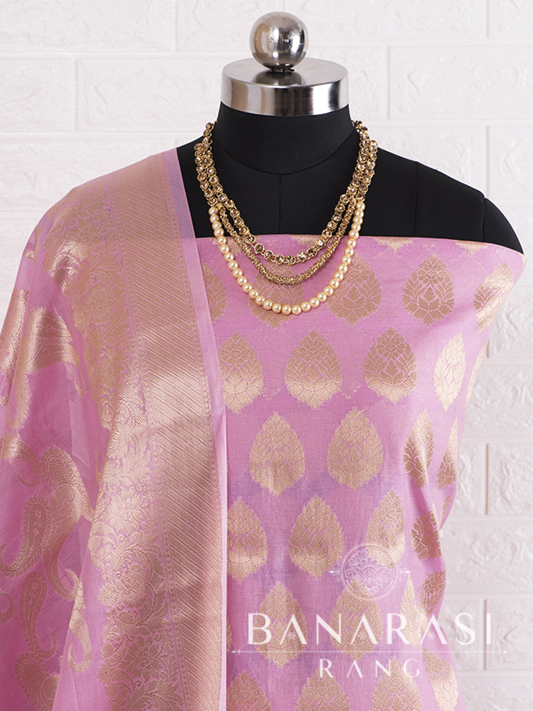 Look dashing in this feminine traditional handwoven exclusive dress material . Includes unstitched fabric of top and bottom,with dupatta. Product - Handwoven Pure chanderi suit