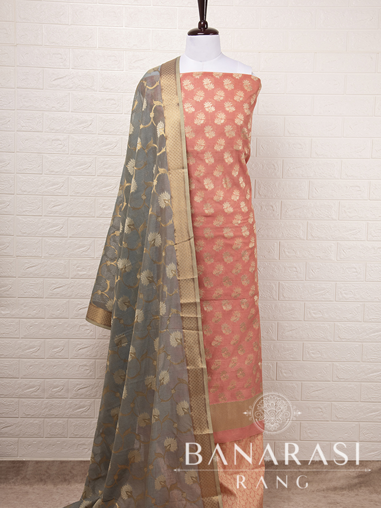 Look dashing in this feminine traditional handwoven exclusive dress material . Includes unstitched fabric of top and bottom,with dupatta. Product - Handwoven Pure chanderi suit colour- Orange