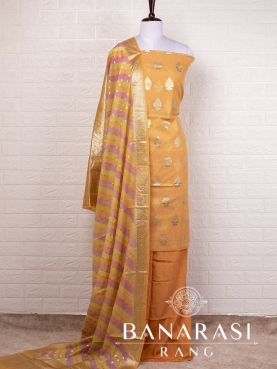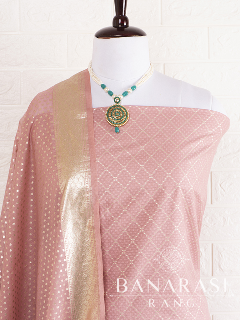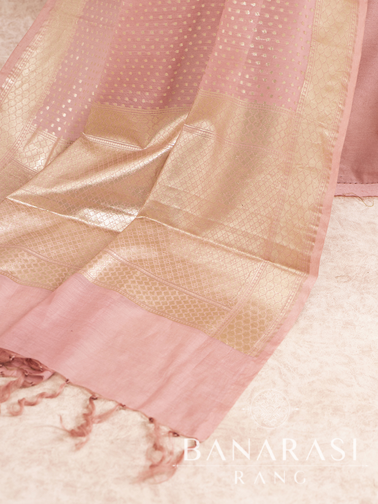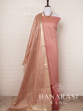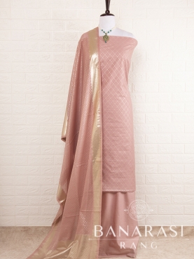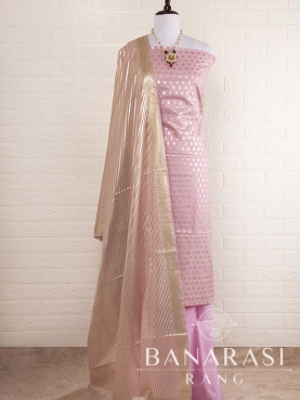 Look dashing in this feminine traditional handwoven exclusive dress material . Includes unstitched fabric of top and bottom,with dupatta. Product - Handwoven Pure chanderi suit Fabric - Chanderi Cotton colour- Mauve