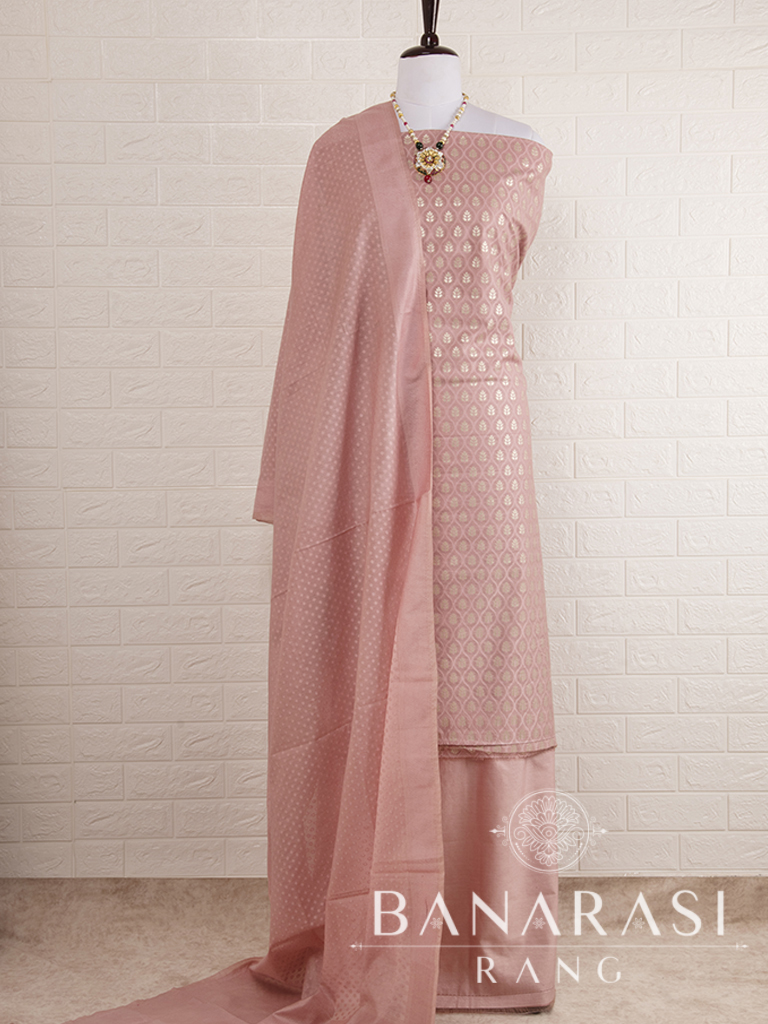 Look dashing in this feminine traditional handwoven exclusive dress material . Includes unstitched fabric of top and bottom,with dupatta. Product - Handwoven Pure chanderi suit Fabric - Chanderi Cotton colour- mauve