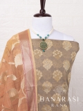 Look dashing in this feminine traditional handwoven exclusive dress material . Includes unstitched fabric of top and bottom,with dupatta. Product - Handwoven Pure chanderi suit colour- Light Brown