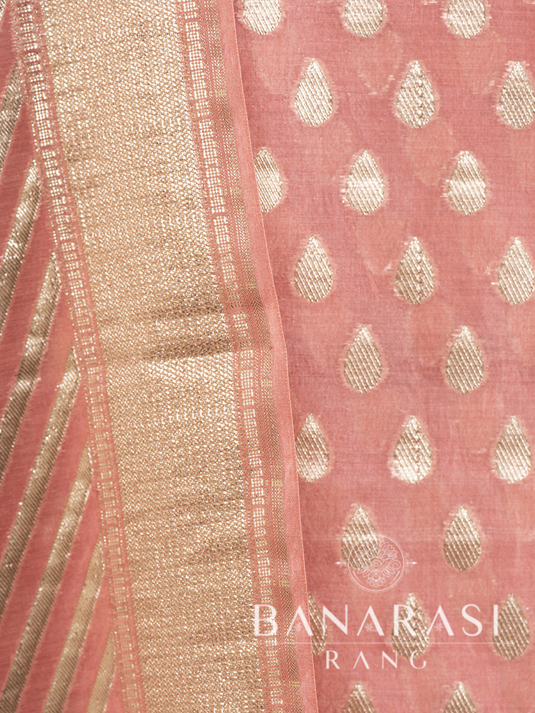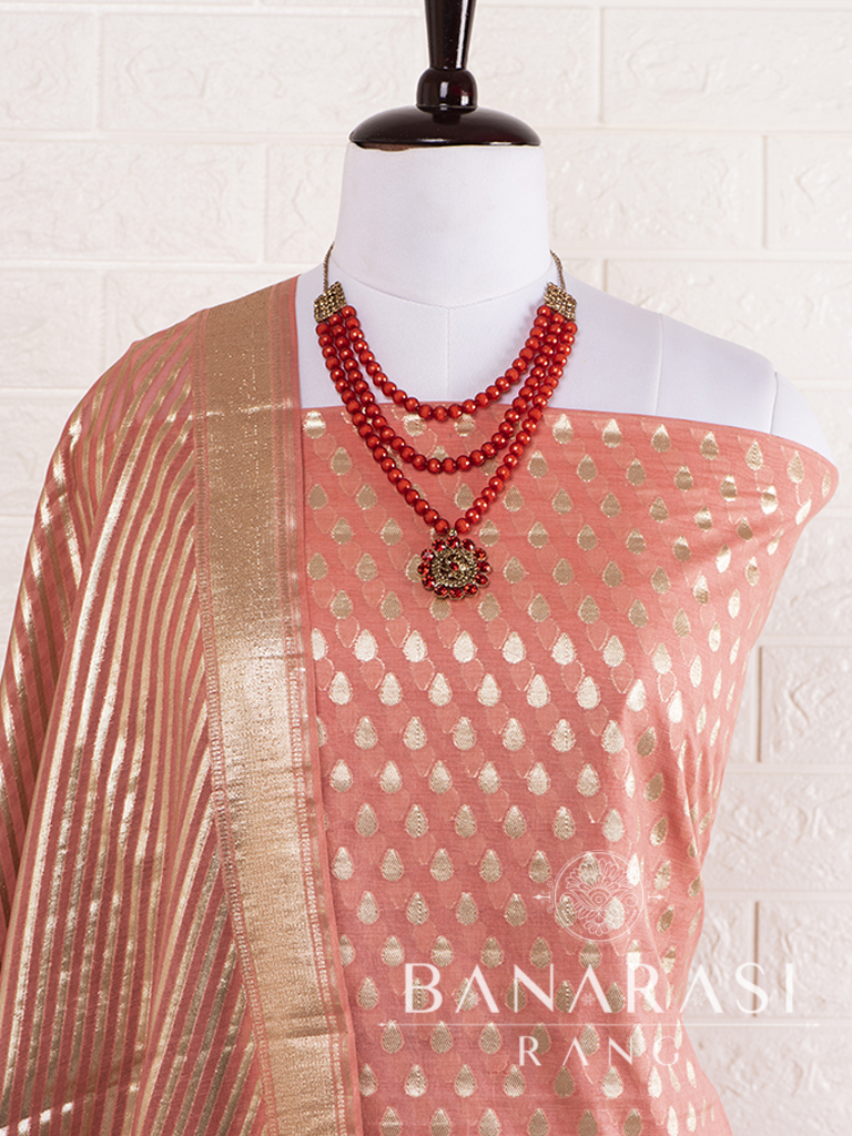 Look dashing in this feminine traditional handwoven exclusive dress material . Includes unstitched fabric of top and bottom,with dupatta. Product - Handwoven Pure chanderi suit Fabric - Chanderi Cotton colour- Blush pink