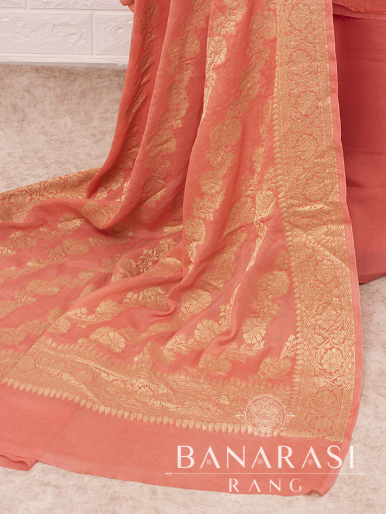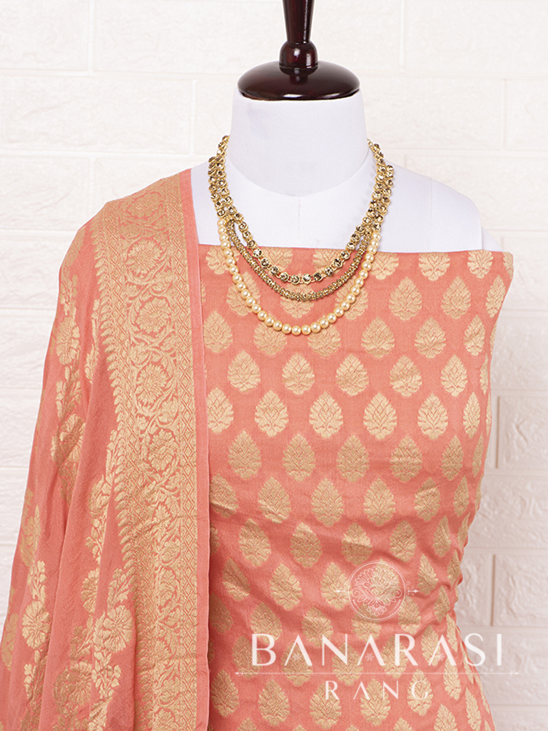 Look dashing in this feminine traditional handwoven exclusive dress material . Includes unstitched fabric of top and bottom,with dupatta. Product - Handwoven Pure Chiffon Suit