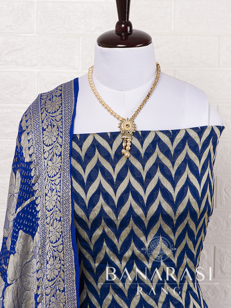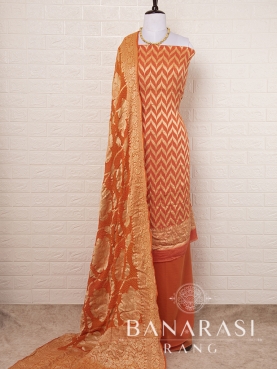 Look dashing in this feminine traditional handwoven exclusive dress material . Includes unstitched fabric of top and bottom,with dupatta. Product - Handwoven Pure Chiffon Suit
