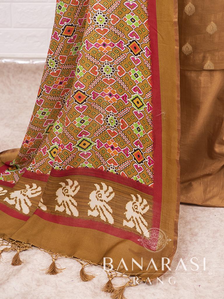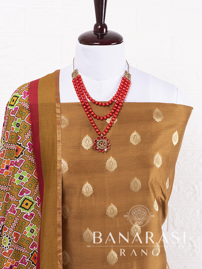 Look dashing in this feminine traditional handwoven exclusive dress material . Includes unstitched fabric of top and bottom,with dupatta. Product - Pure Silk