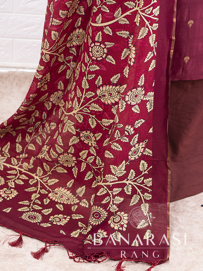 Look dashing in this feminine traditional handwoven exclusive dress material . Includes unstitched fabric of top and bottom,with dupatta. Product - Pure Silk
