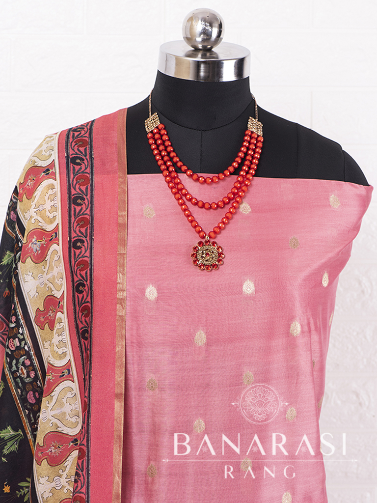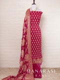 Look dashing in this feminine traditional handwoven exclusive dress material . Includes unstitched fabric of top and bottom,with dupatta. Product - Pure Silk