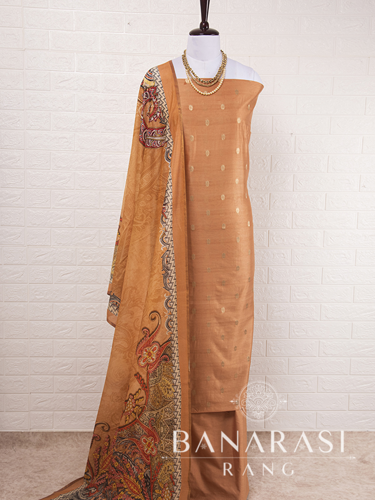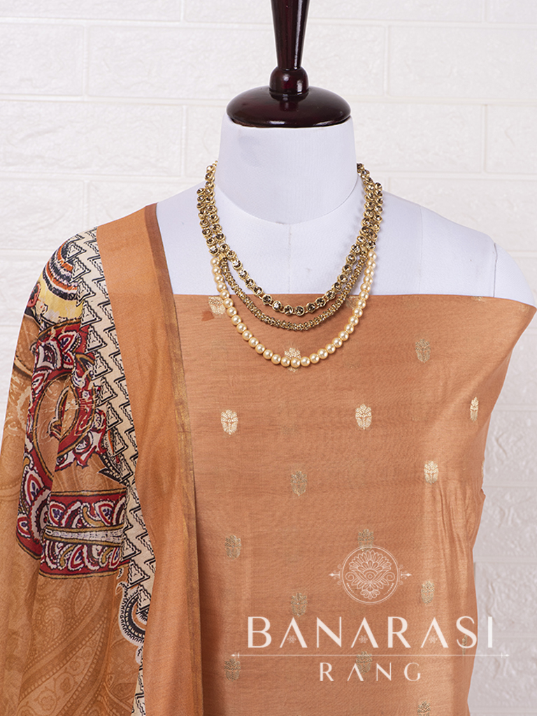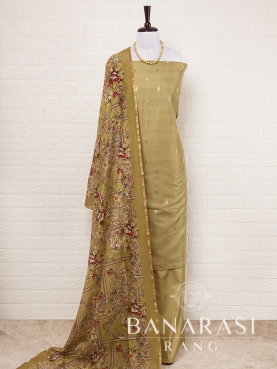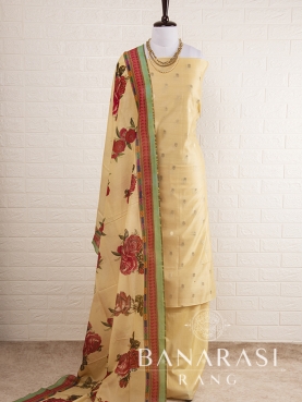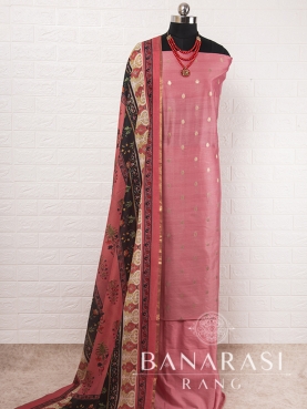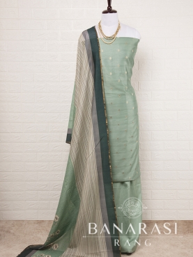 Look dashing in this feminine traditional handwoven exclusive dress material . Includes unstitched fabric of top and bottom,with dupatta. Product - Pure Silk