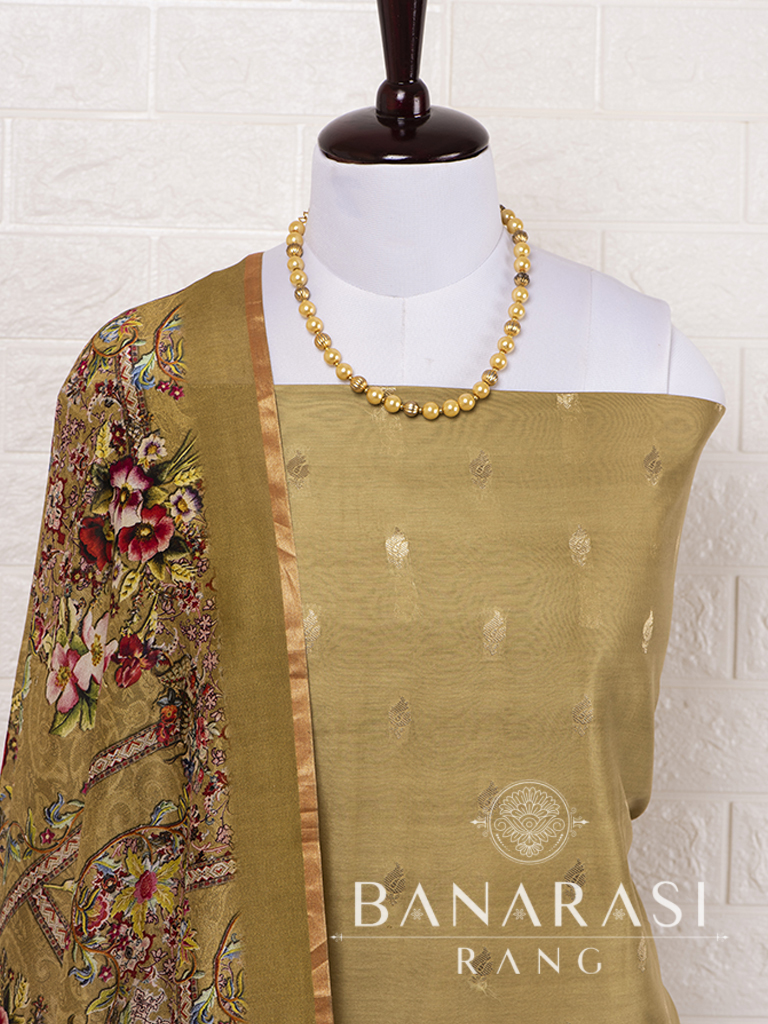 Look dashing in this feminine traditional handwoven exclusive dress material . Includes unstitched fabric of top and bottom,with dupatta. Product - Pure Silk