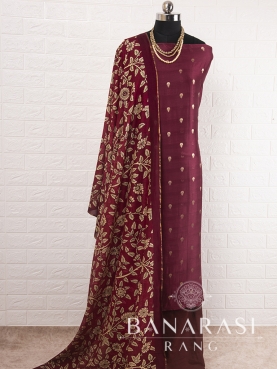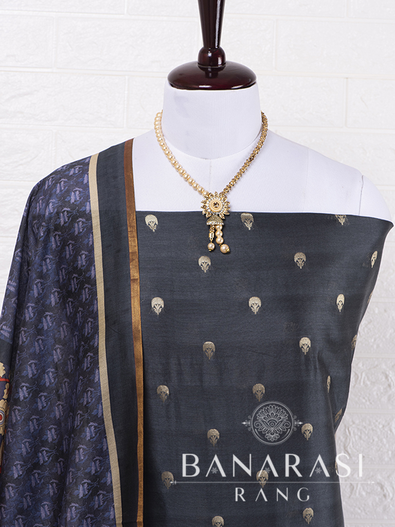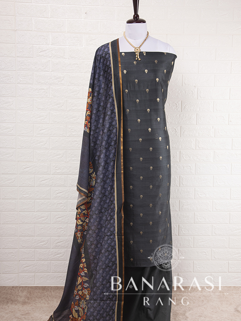Look dashing in this feminine traditional handwoven exclusive dress material . Includes unstitched fabric of top and bottom,with dupatta. Product - Pure Silk