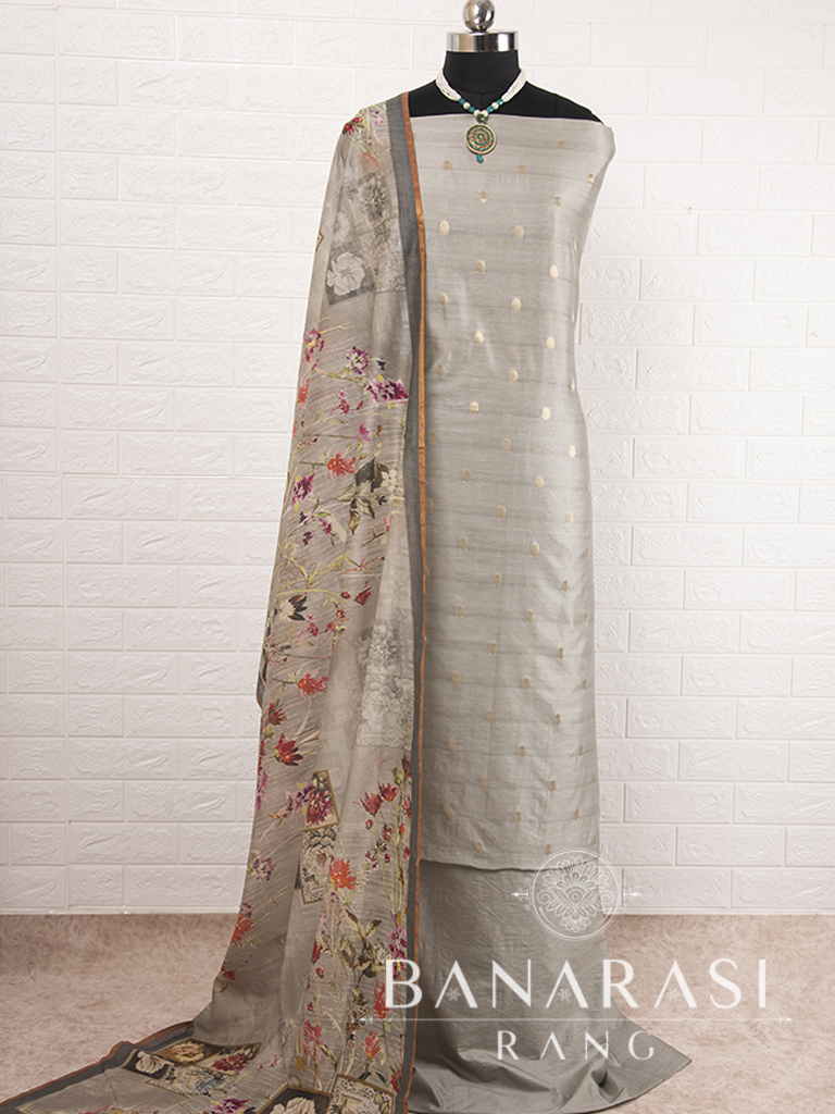Look dashing in this feminine traditional handwoven exclusive dress material . Includes unstitched fabric of top and bottom,with dupatta. Product - Pure Silk