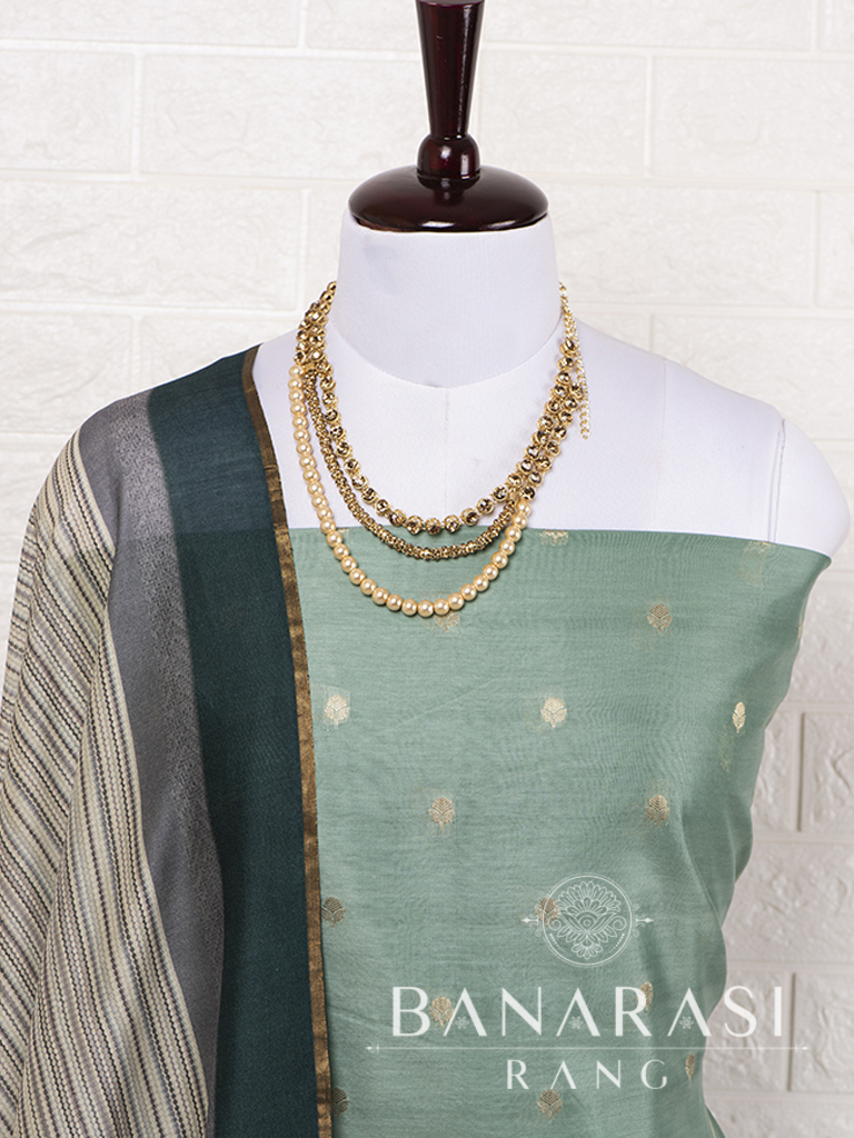 Look dashing in this feminine traditional handwoven exclusive dress material . Includes unstitched fabric of top and bottom,with dupatta. Product - Pure Silk