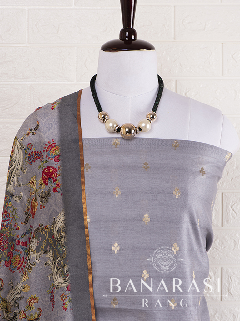 Look dashing in this feminine traditional handwoven exclusive dress material . Includes unstitched fabric of top and bottom,with dupatta. Product - Pure Silk