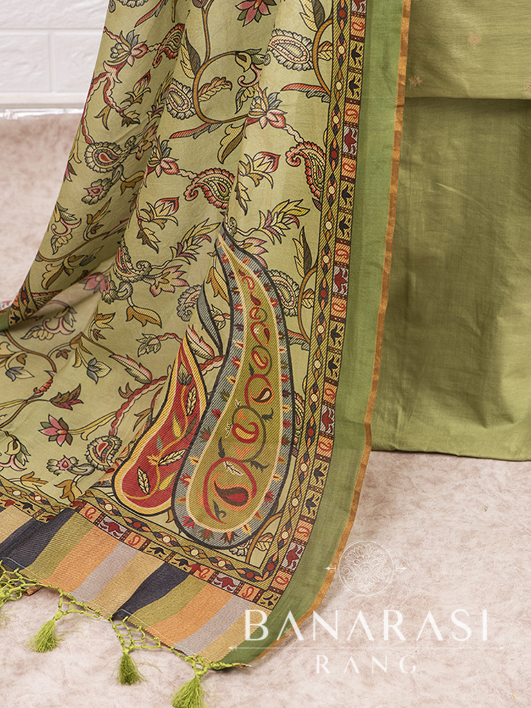 Look dashing in this feminine traditional handwoven exclusive dress material . Includes unstitched fabric of top and bottom,with dupatta. Product - Pure Silk