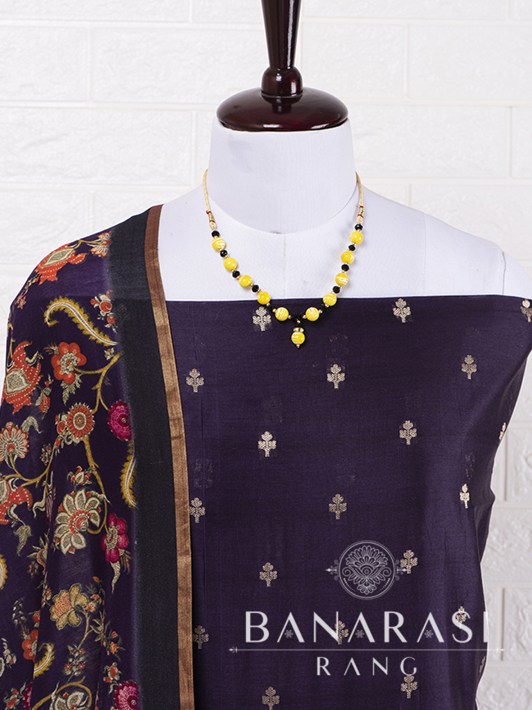 Look dashing in this feminine traditional handwoven exclusive dress material . Includes unstitched fabric of top and bottom,with dupatta. Product - Pure Silk