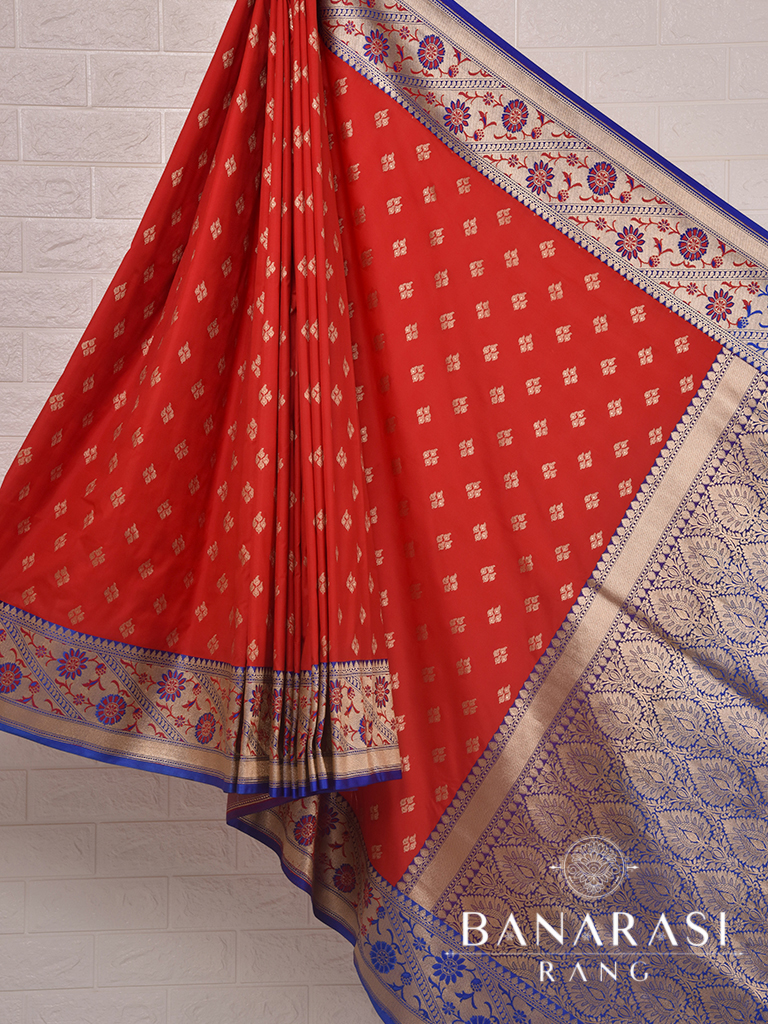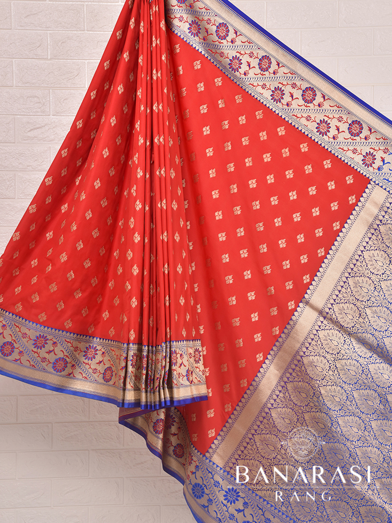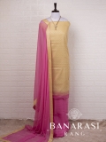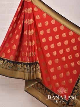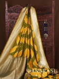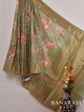 Showcasing Classic craft technique with traditionl design this beautiful semi katan saree in antique colour with zari design and floral border. Pallu of this saree is decorated with zari threads in beautiful pattern. The silk body gives it a ethereal feel.