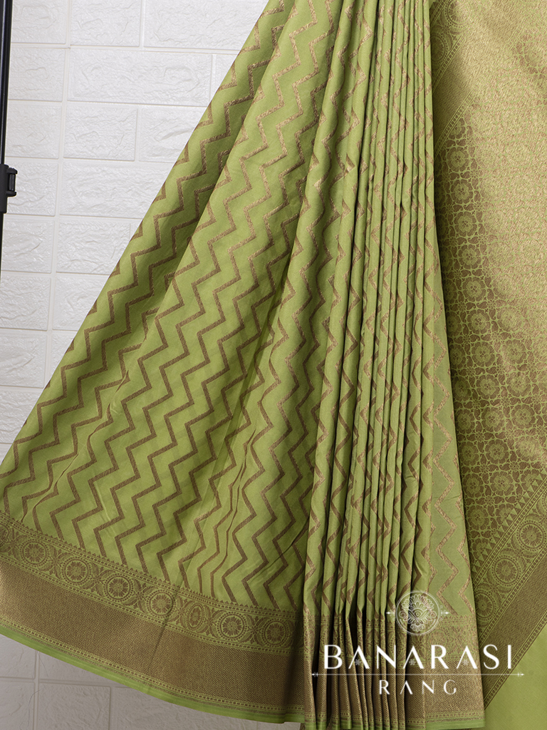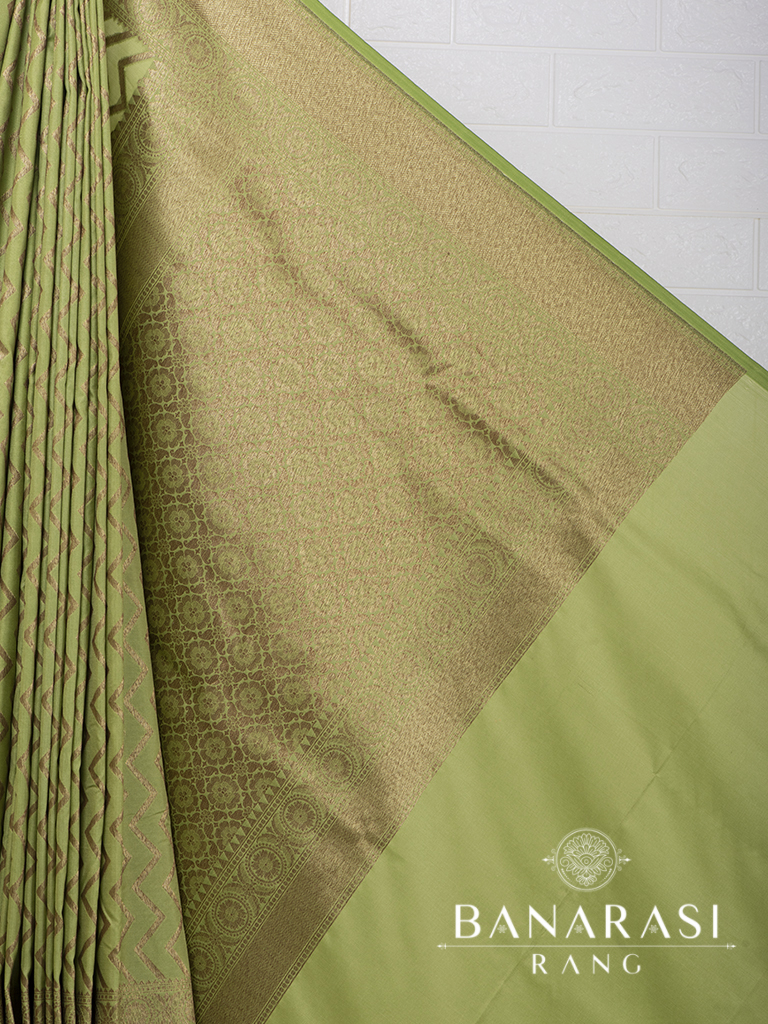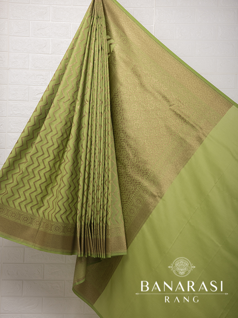 Showcasing Classic craft technique with traditionl design this beautiful semi katan saree in antique colour with zari design and floral border. Pallu of this saree is decorated with zari threads in beautiful pattern. The silk body gives it a ethereal feel.